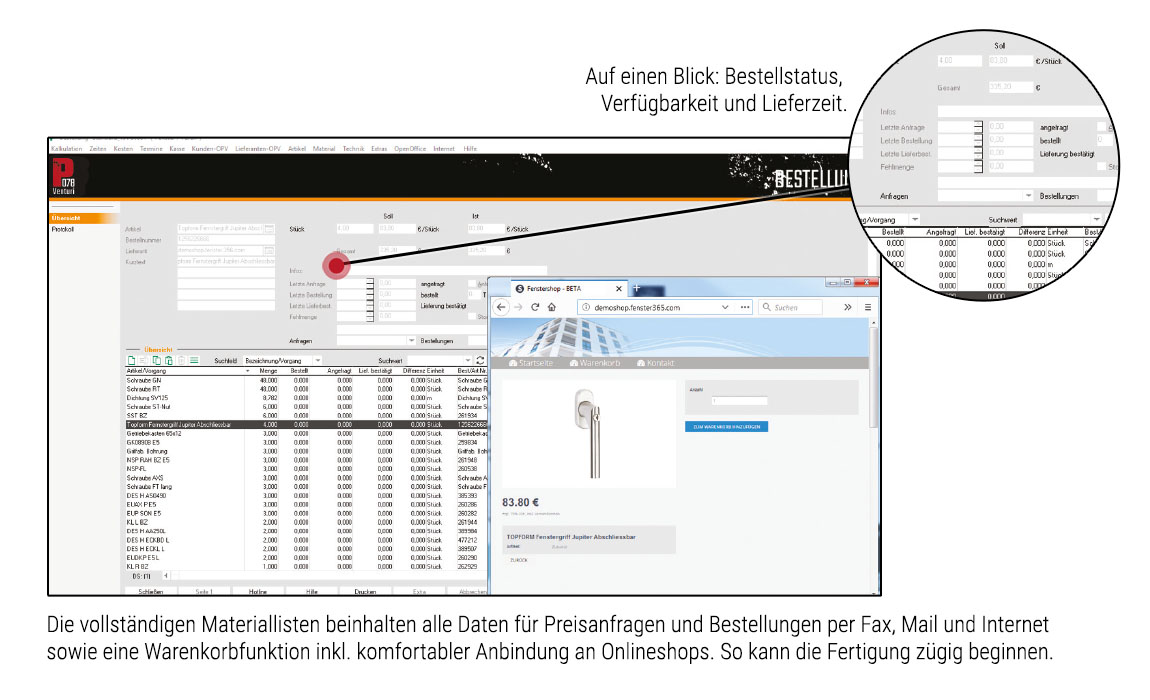 Per Knopfdruck erhalten Sie Preise, Mengen und Bestellungen. Die Angaben auf dem Montagezettel beugen Missverständnissen und Nachfragen vor. Das spart viel Zeit, Material, Geld und Nerven.